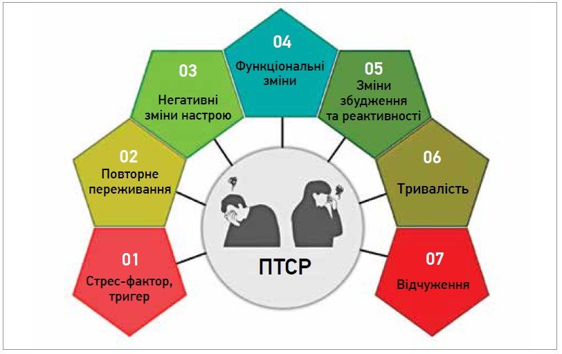 У військових ПТСР може проявлятися по-різному: нічні кошмари, часте перебування «в режимі тривоги», несподівані спалахи гніву, відчуття вини за те, що «вижив», надмірна обережність у буденному житті. Деякі люди стають замкненими, уникають контактів, важко адаптуються до мирного середовища.